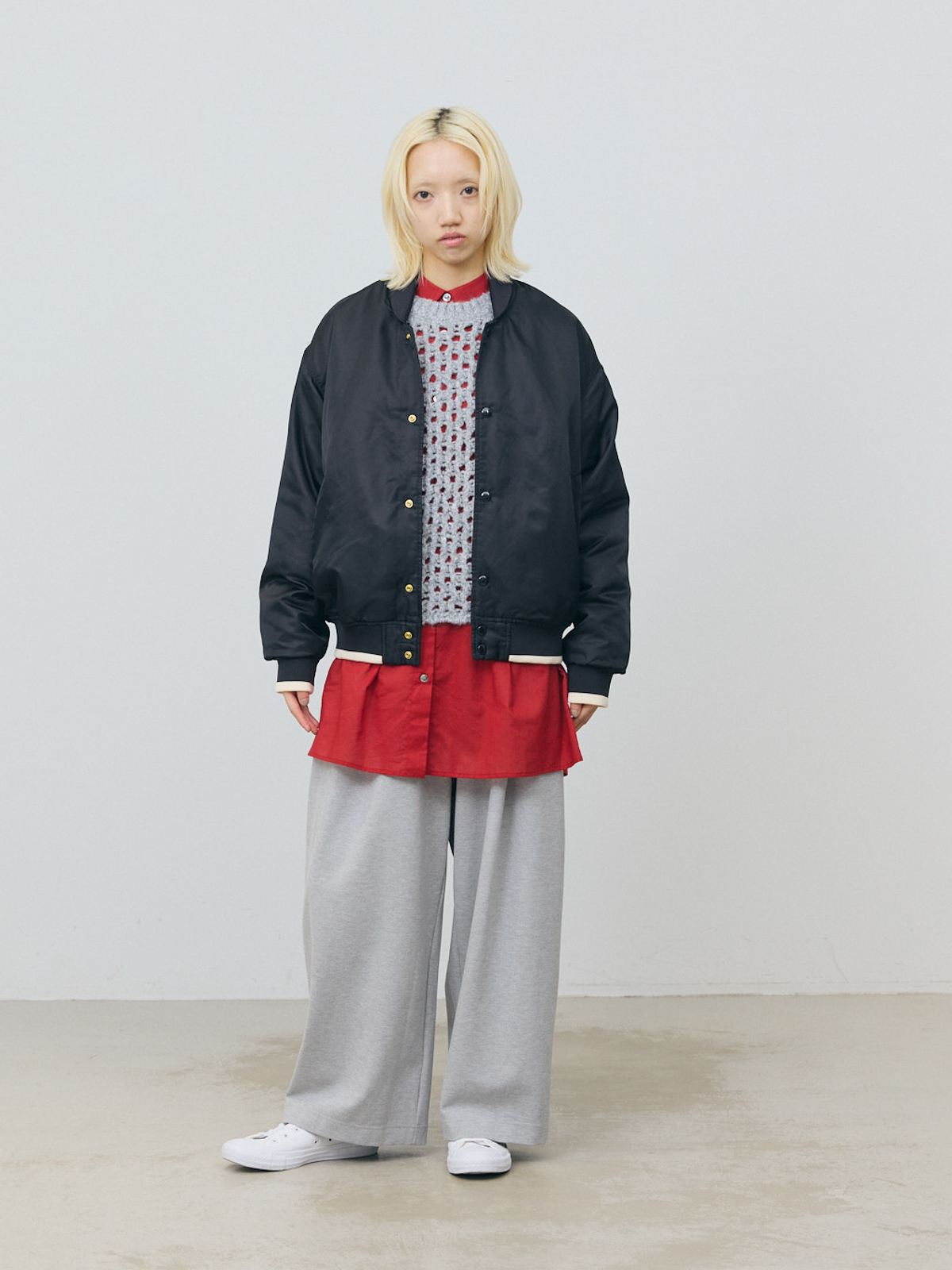 カラーはオフホワイト・アイボリー・レッド・ネイビーの4色展開。シアーな質感で、インナーとしても主役トップスとしても映える色合いです。色違いで揃えたくなるほど着回し力が高く、コーディネートの幅を広げる一着。どの色もシーンやスタイリングに合わせやすく、季節を問わず活躍します。