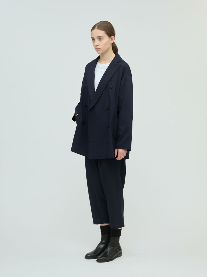ダブルブレストデザインのシャツジャケット。フロントボタンは飾りです。落ち感のあるとろみのある素材感で心地よくロングシーズンコーディネートで活躍。リラックスしてきちんと感のあるスタイルが叶います。