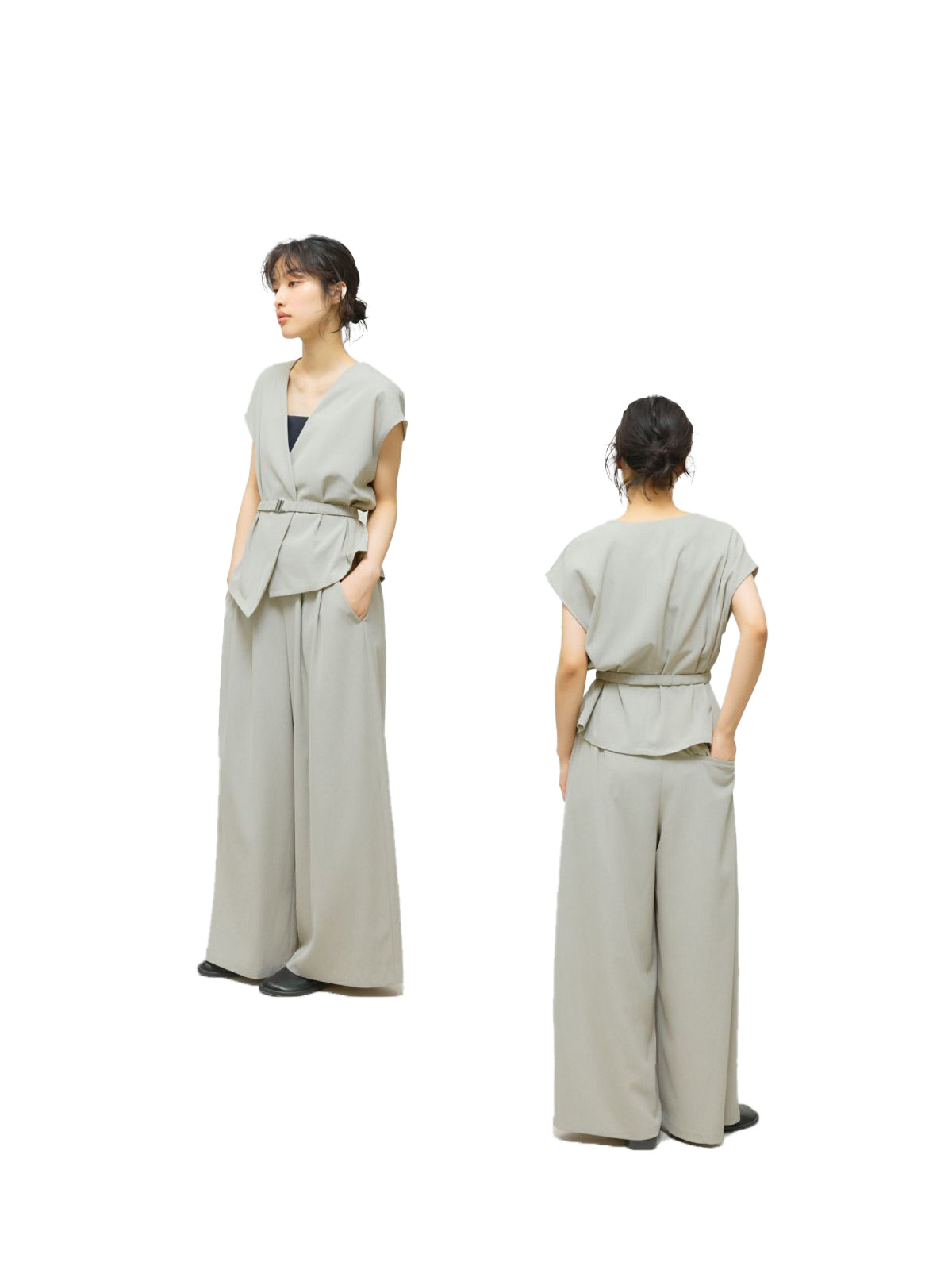 スッキリとした首元やボタンレスでベルト付の清楚なベストアイテム。ウエストマークのできる女性らしいデザインが特徴。ベルト無しで軽く羽織って雰囲気を変えていただけます。