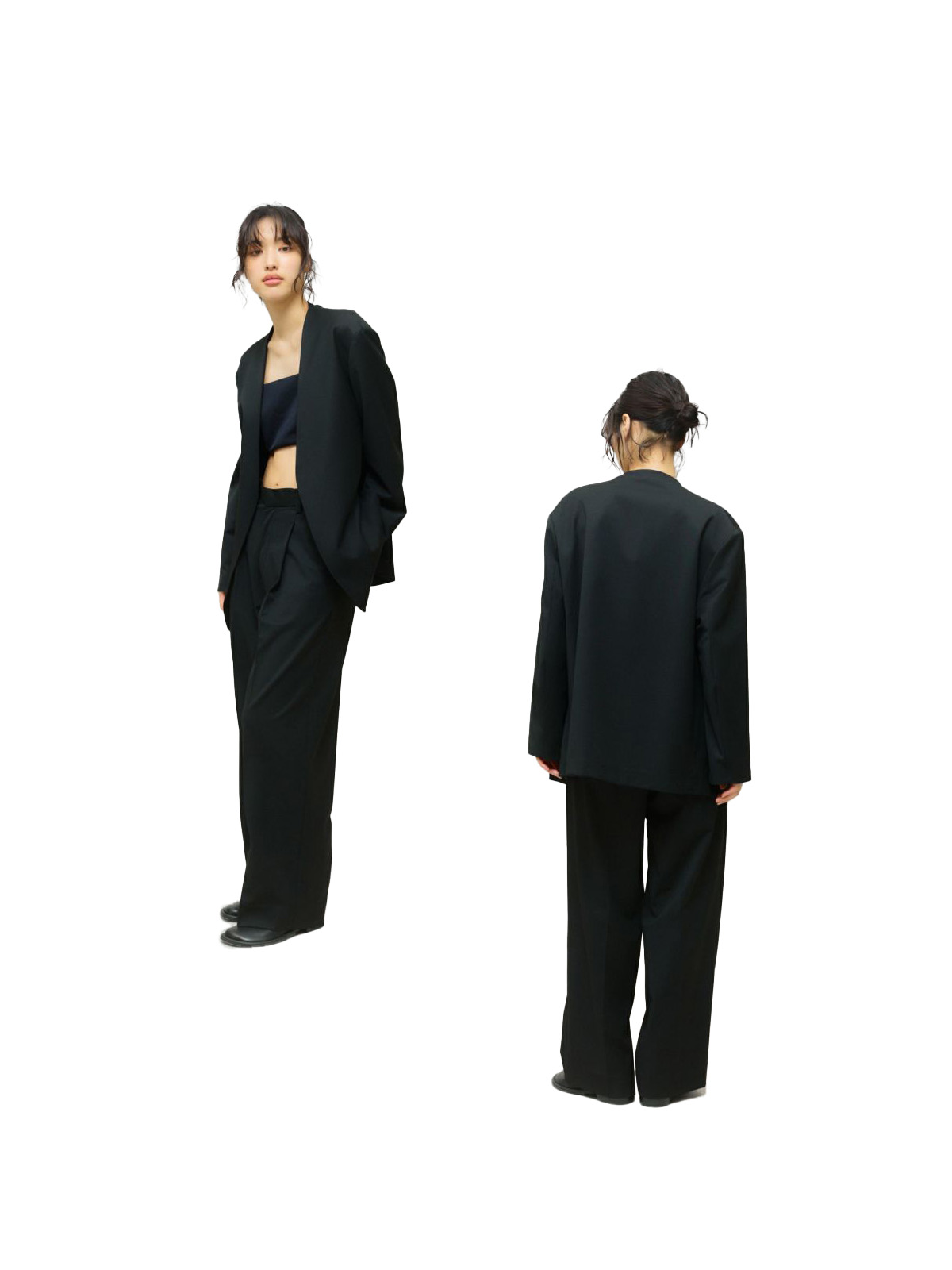 上品でミニマムなデザインに仕上げたノーカラージャケットです。同シリーズのジレを合わせて襟付きジャケットを表現していただけます。