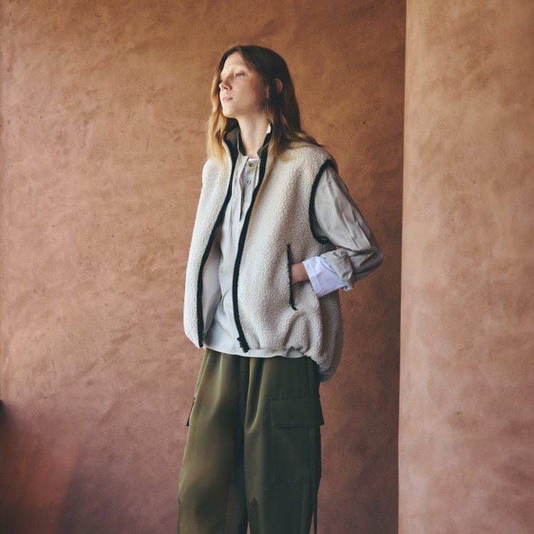レイヤードで秋の装いを楽しむボアベストやメッシュニットなど新作が入荷しました