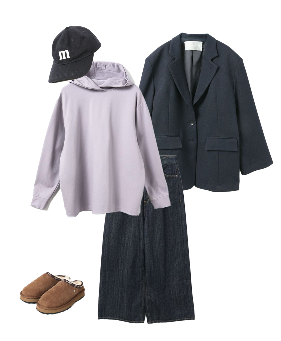 ハンサムな印象のアイテムですが敢えて今期のフーディやスウェットパンツ等のカジュアルなアイテムと組み合わせてラフに着用していただくのがおすすめです。大きめのサイズ感でデザインしているので、中にニット等厚手のトップスも合わせていただけます。