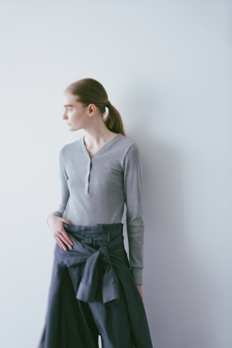 rib henley neck pullover