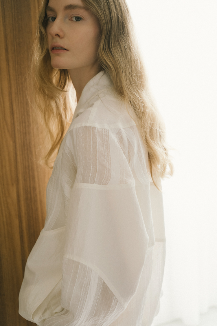 sheer tailored shirt jacket