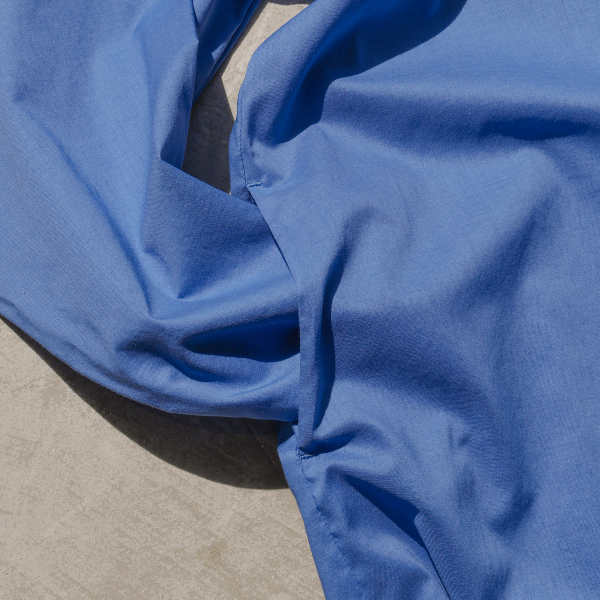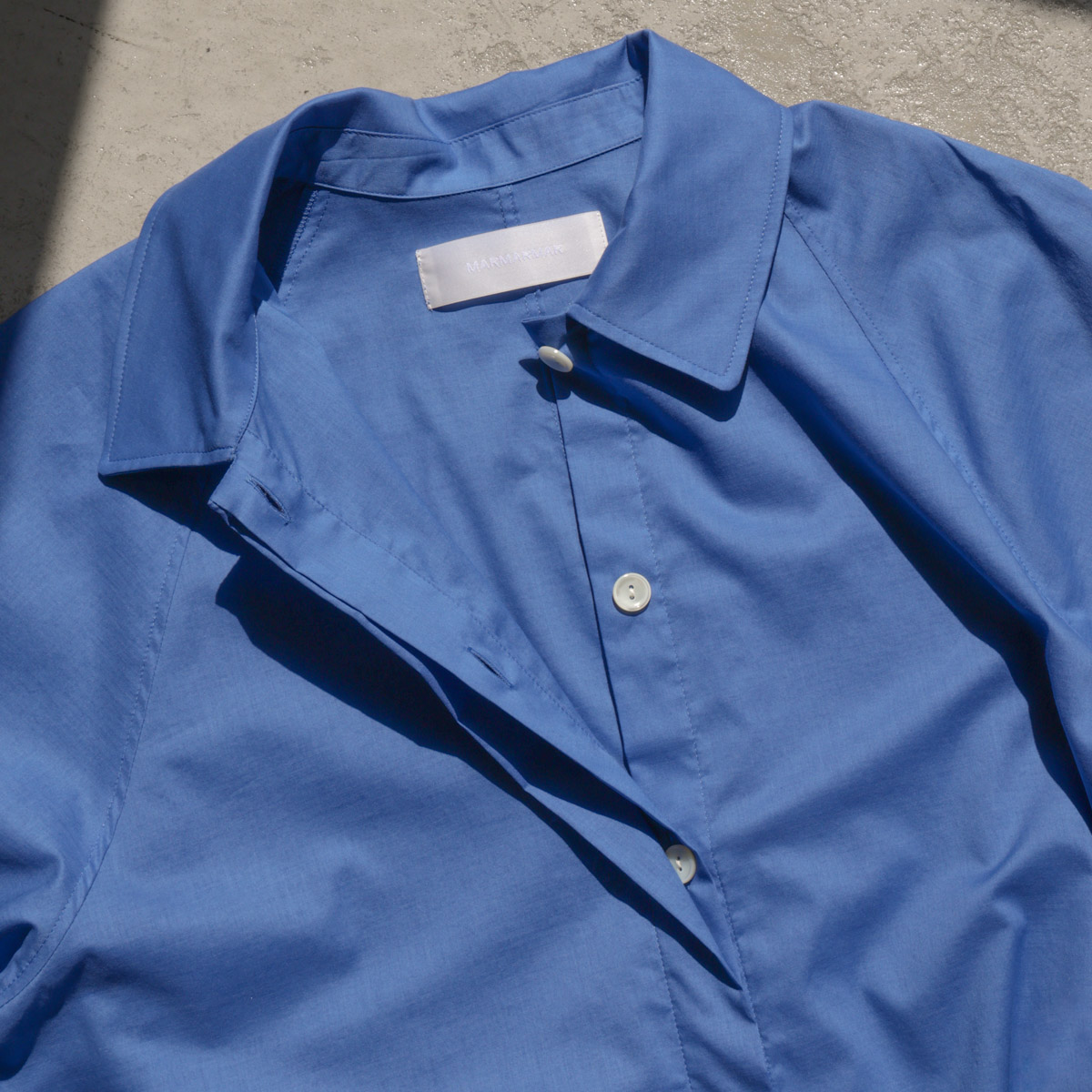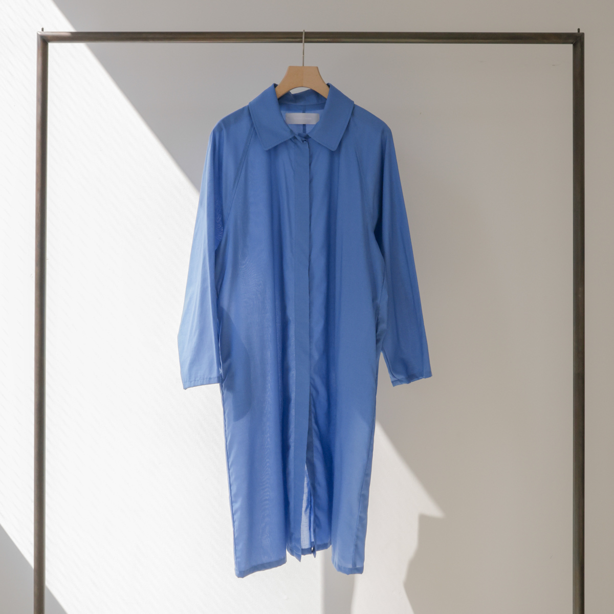 薄手の60ローン素材を使用。ほどよい反発感があり、やわらかな着心地ながらもきれいなシルエットを保ちます。ほんのり透け感のある素材で、インナーとのレイヤードも楽しめるのが魅力。軽やかな質感で、季節の変わり目の装いに取り入れたい一枚です。