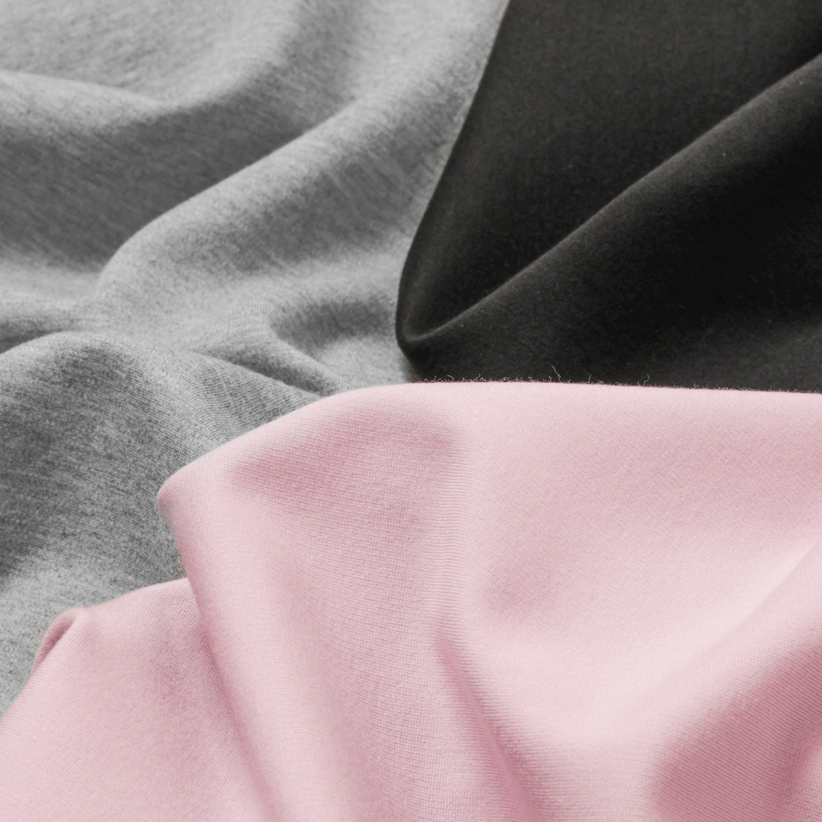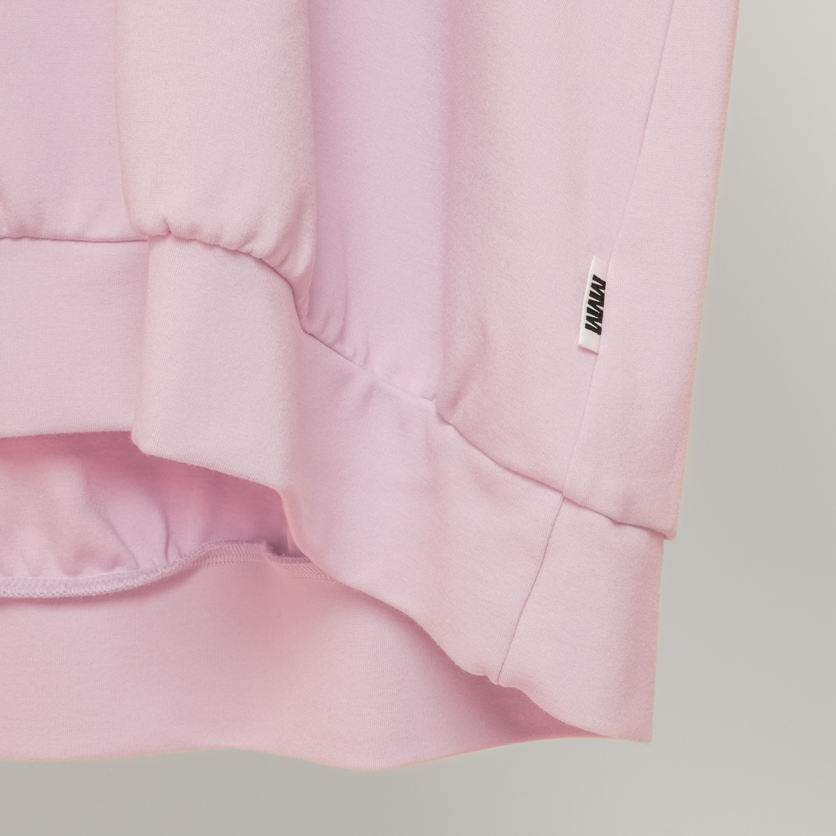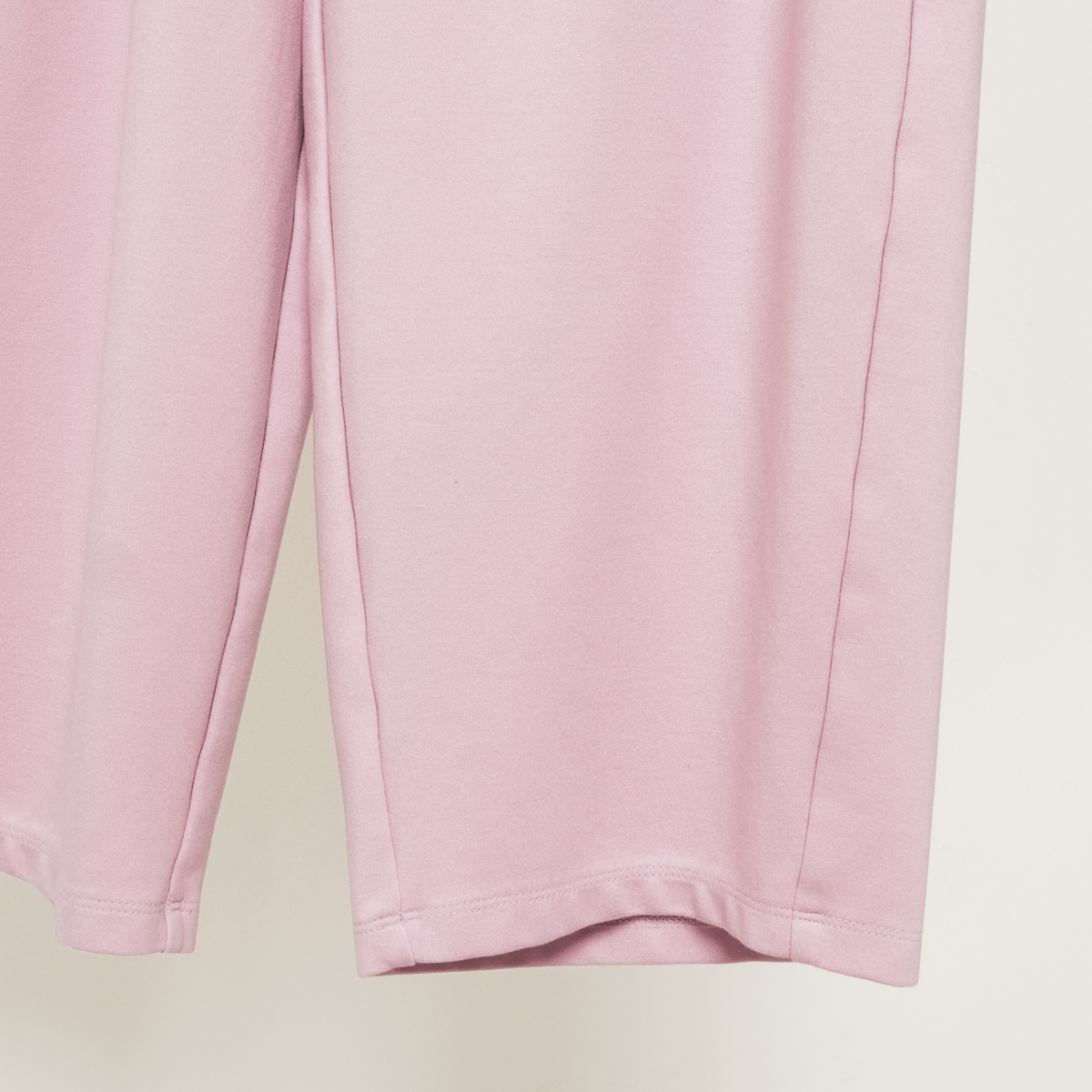 弾力のある上質なポンチ素材を使用。一般的な裏毛スウェットよりも光沢感がありカジュアルになりすぎない上品な印象。とろけるようなパウダリータッチな肌触りも魅力。UV CUT効果も備え、これからの季節にも取り入れやすい素材感です。カラーはやわらかな印象でスタイリングのアクセントになるピンク、着回しやすいベーシックカラーのトップグレーとブラックの3色展開。カジュアルにはもちろん、きれいめなコーディネートにも取り入れやすく、幅広いスタイリングに活躍するシリーズです。
