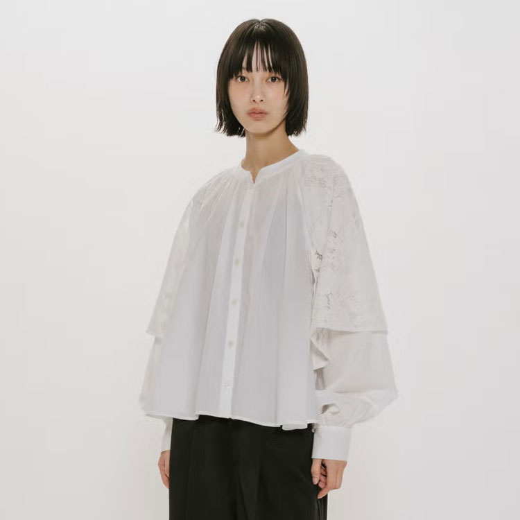 たっぷり寄せたギャザーにレースがふわりと揺れる春ブラウスなど新作が入荷しました