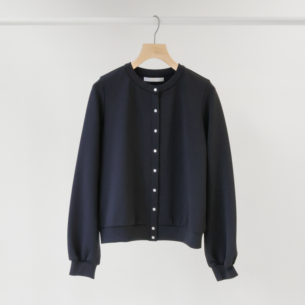 フロントには石付きのスナップボタンをあしらい、さりげないアクセントとして上品な印象をプラス。