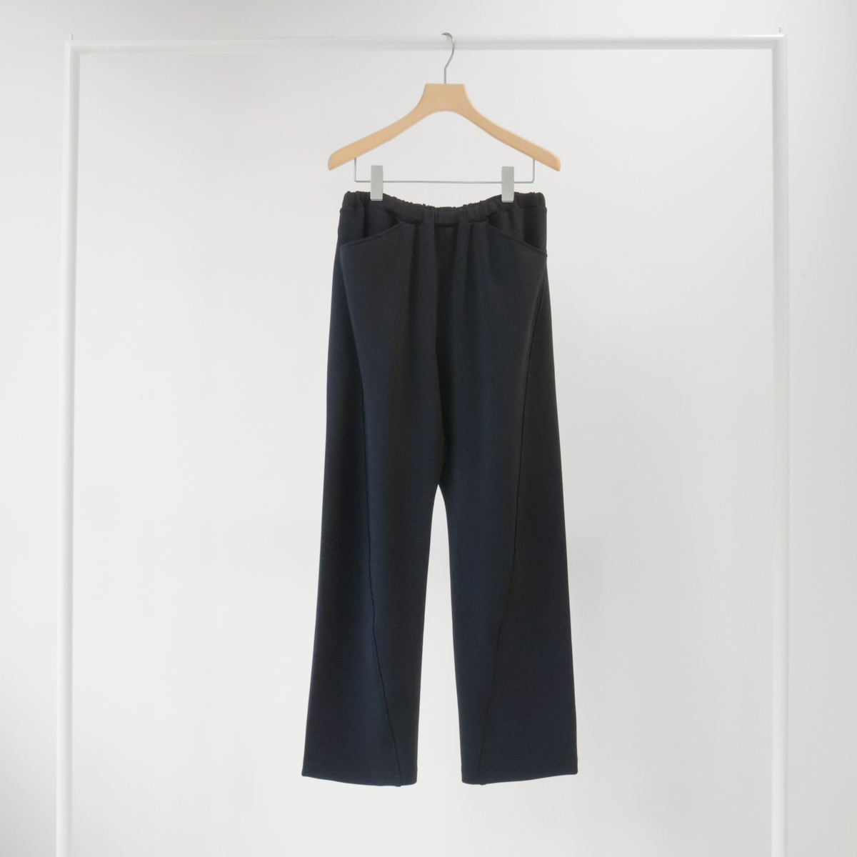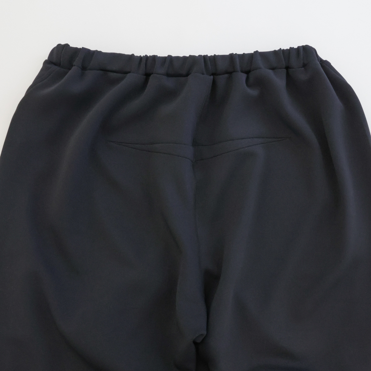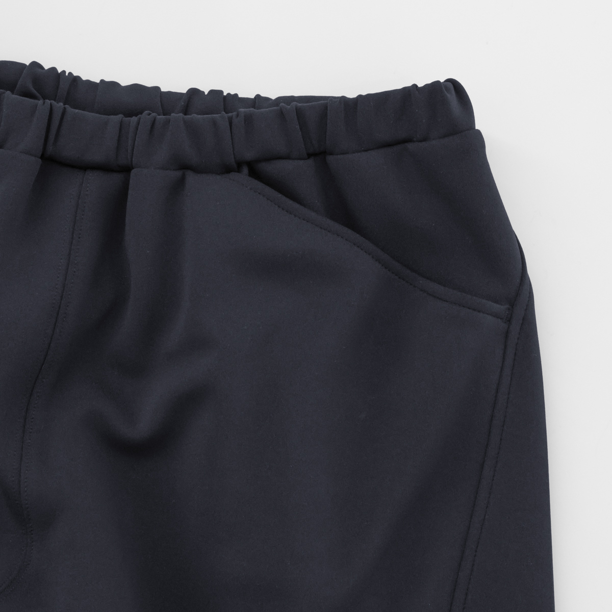 ほどよい肉感のダンボール素材。ストレッチ性があり快適な着心地で、なめらかな表面感とさりげない光沢感、ハリのある風合いでカジュアルになりすぎない上品な印象に仕上げました。カラーは、ベーシックで着回しやすいネイビーとブラックの2色展開。デイリーに取り入れやすく、さまざまな着こなしを楽しめるシリーズです。