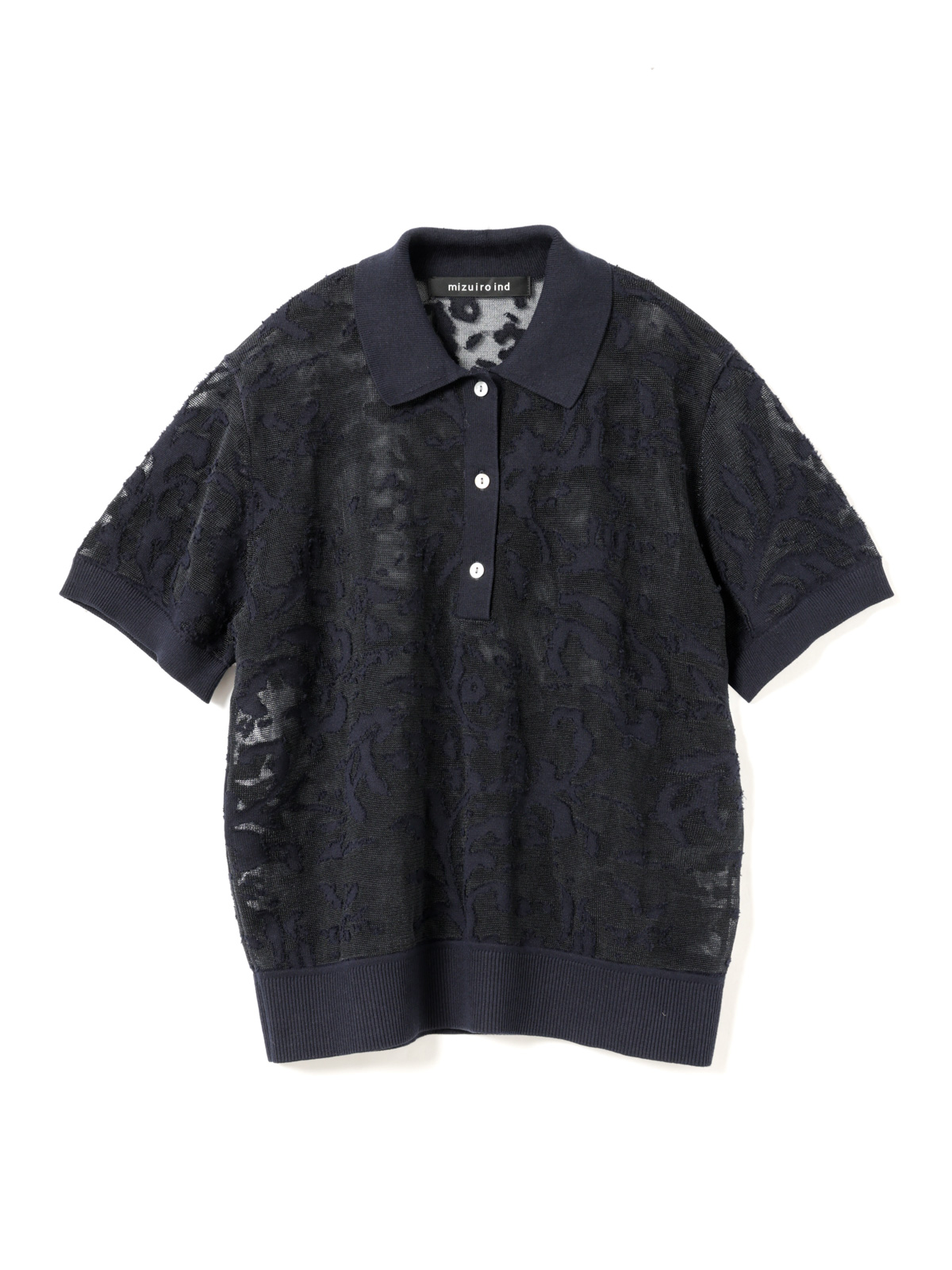 繊細なメッシュ刺繍が施されたポロ衿のプルオーバー。刺繍の透け感と立体的なテクスチャーが、上品な印象を演出します。シンプルなボトムスに合わせるだけで、洗練されたスタイルが完成。