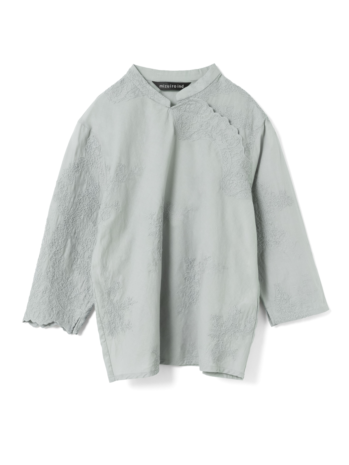 繊細なレース刺繍にシノワズリ柄を取り入れた、他にはない特別感のある一枚。上品な透け感と丁寧に施されたデザインが、着こなし全体を格上げします。初夏の装いに、東洋の薫りを。