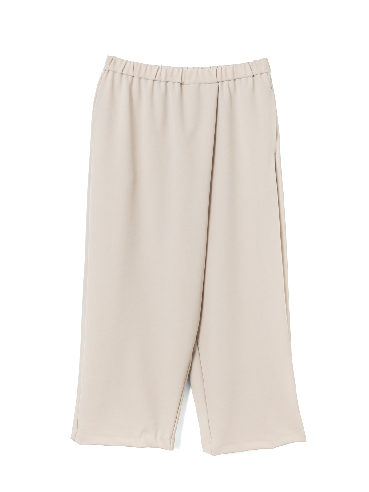 ラップスカートのような独特のシルエットが新鮮な、イージーパンツ。スカートとパンツのいいとこどりで、動きやすさと女性らしさを同時に叶えます。初夏のコーデのアクセントに。