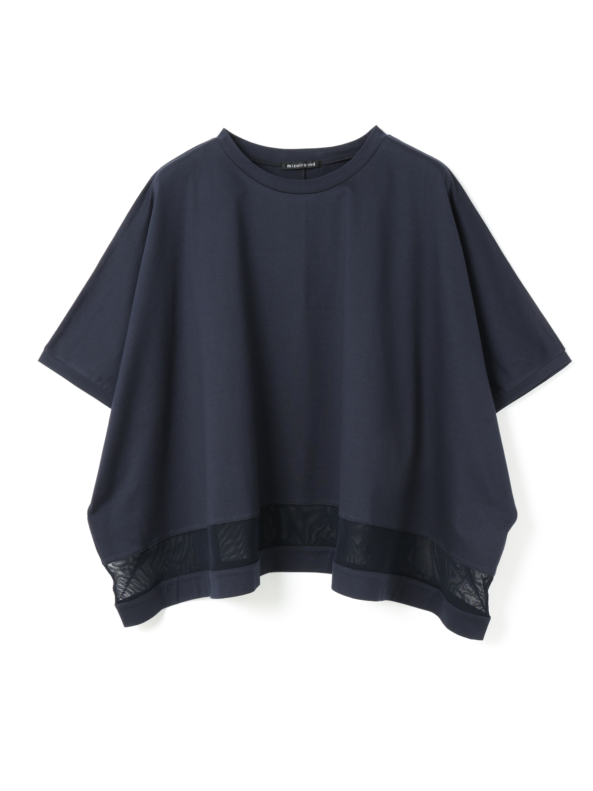 裾にメッシュ素材を切り替えたワイドシルエットのプルオーバー。透け感のある裾ラインが着こなしに軽さと遊び心を添えます。インナーとのレイヤードを楽しんだり、一枚で着こなしたり。初夏のスタイリングに重宝する一着。