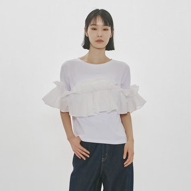 快適さとモード感を両立したアレンジ自在なフリル付きTシャツなど新作が入荷しました